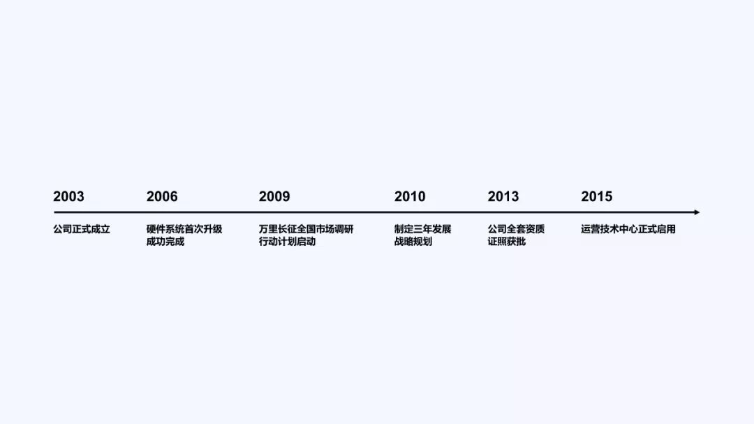 在 PPT 设计中,时间轴页应该算是,较为常见的页面类型了。像个人述职、项目路演或者公司介绍的 PPT 中,大都会用时间轴页,来回首过去,让观众更加直观的了解自己或者公司的成长历程。就比如下面这些页面: