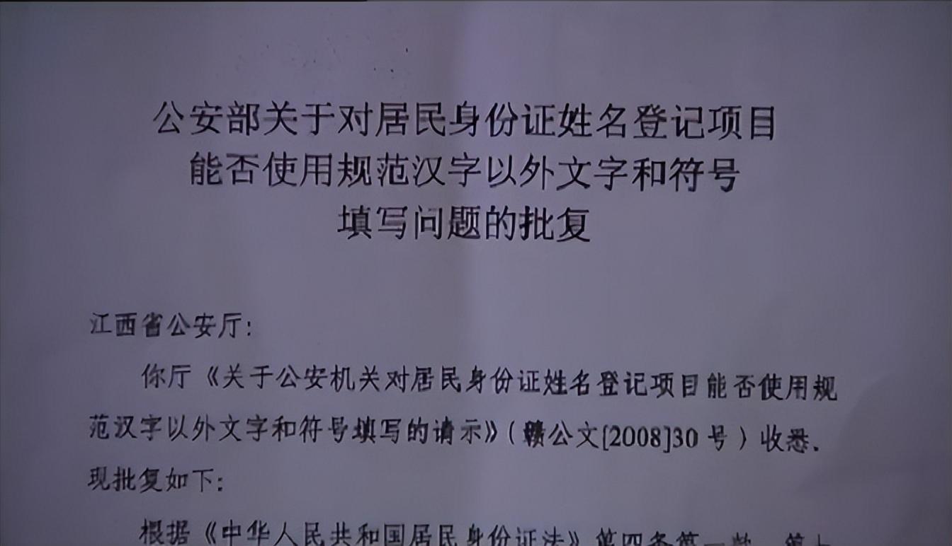 他不明白,既然第一代身份证能够合法使用这个姓名,