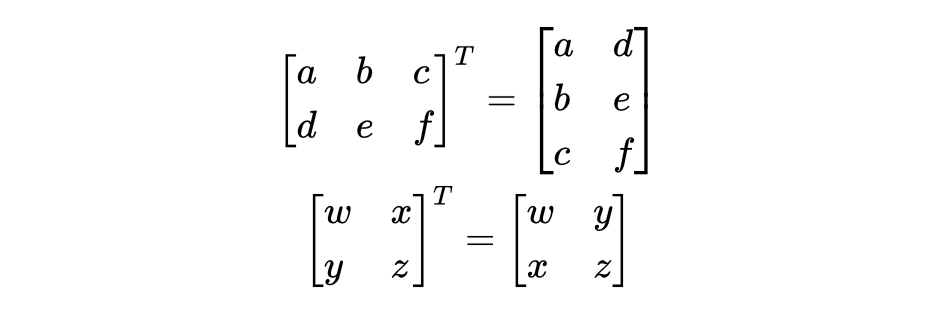 转置矩阵就是交换行和列——原始矩阵A的第一行变成转置矩阵A^T的第一列,A的第二行变成A^T的第二列,以此类推。