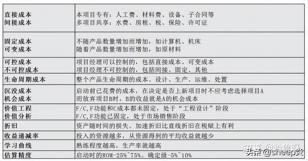 项目成本管理术语