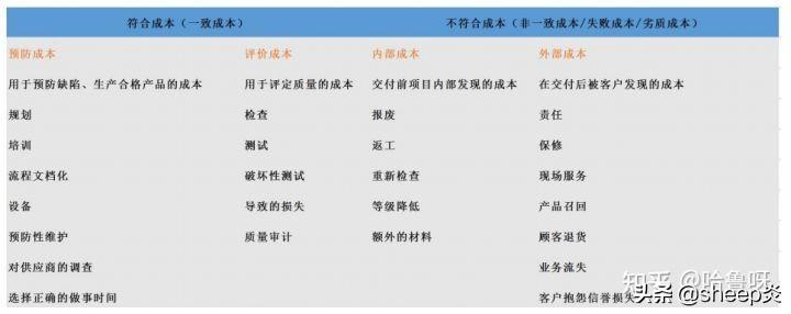 质量成本:一致性成本:在项目期间用于防治失败的费用;非一致性成本:在项目期间和项目完成后用于处理失败的费用。