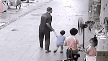 根据监控视频,3个孩子在门口玩,一个陌生男人恰好“路过”。在路过年纪最小的孩子身边时,可怕的一幕发生了——他先摸了摸孩子的下巴,然后肆无忌惮地拽着孩子的手臂,快步朝远处走去。