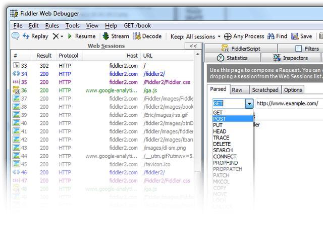 构建HTTP请求:使用Fiddler Web调试器,可以手动构建和发送HTTP,HTTPS和FTP请求。或者,可以选择通过拖放将会话从Web会话列表克隆到Composer选项卡。单击执行按钮将请求发送到服务器。