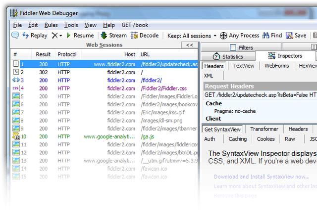 Fiddler Web调试器可以记录,检查和调试来自任何浏览器的流量。