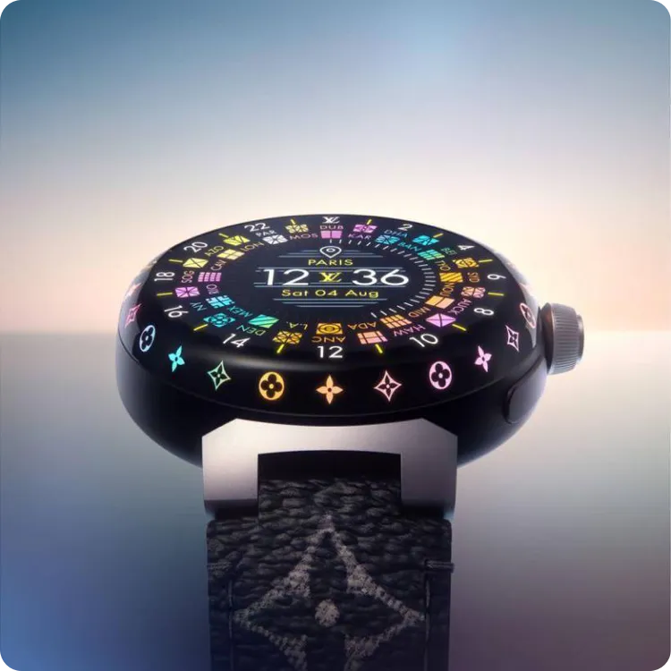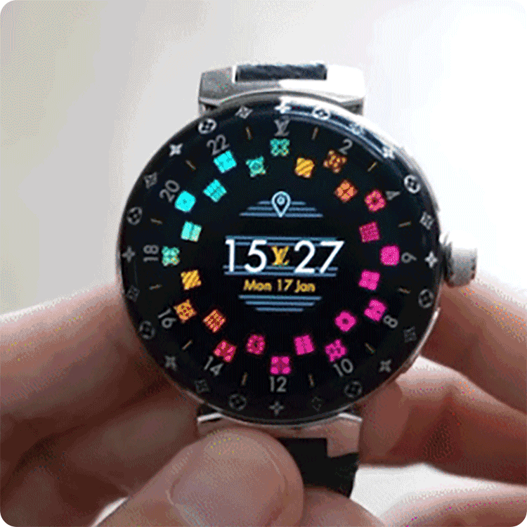 LV采用鸿蒙系统的三代智能手表,与特殊印花表盘结合的动画效果在非常的炫酷流畅,凸显了品牌的调性。