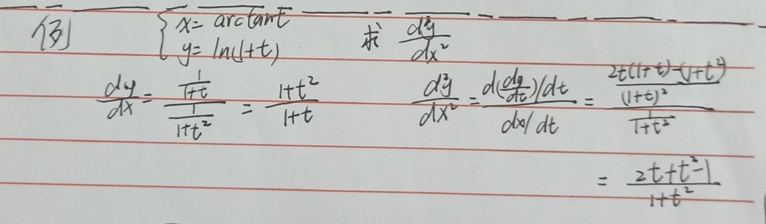 而y对于x的二阶导数则是在一阶导数的基础上再对x求导,所以有: [((dy/dt)/(dx/dt))/dt]/(dx/dt)