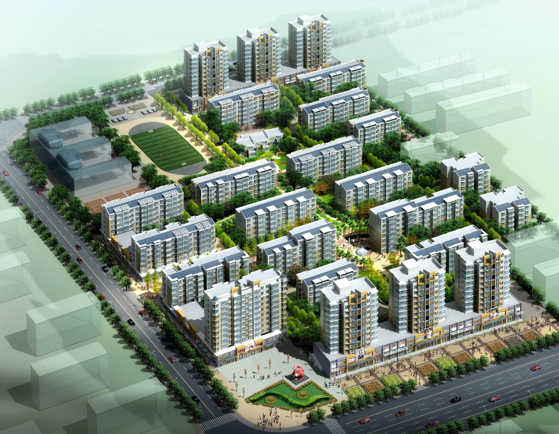 在将原有土地整合的基础上,统一规划保证小区规划设计与周围建筑风貌协调统一。