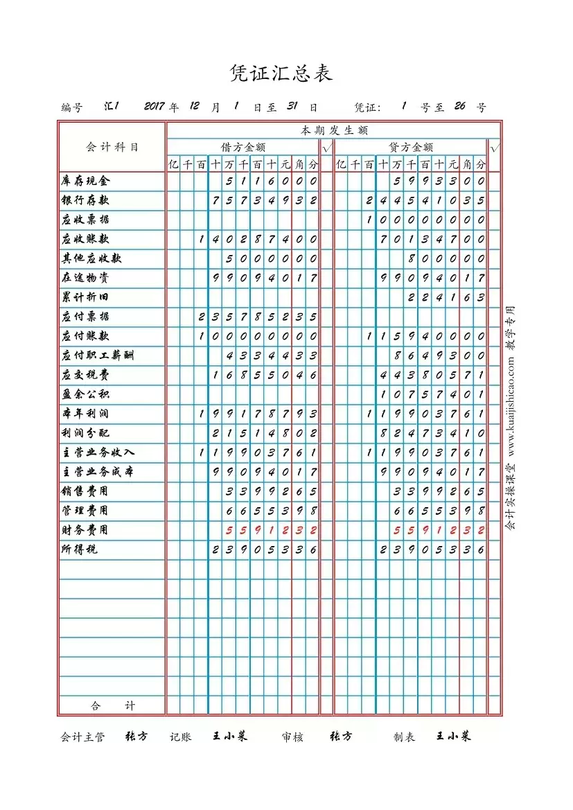 凭证汇总表