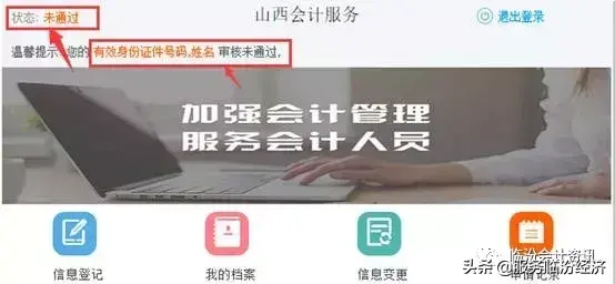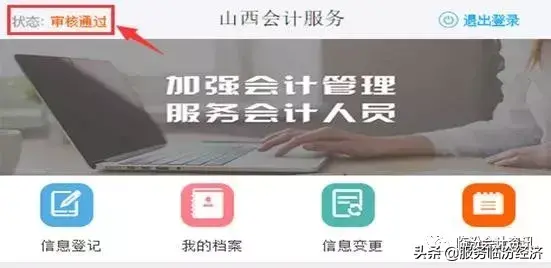 手机微信端提交后,进入等待审核环节,会计人员可在登录首页查询信息审核状态,显示“审核通过”即为完成信息采集。