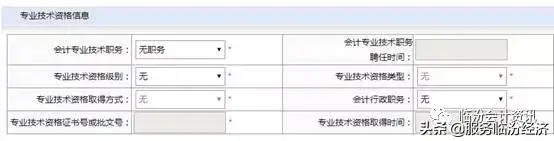 “会计专业技术职务”选择“无职务”时,无需填写会计专业技术职务聘任时间。