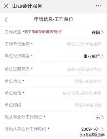 工作状态分为在职、在读和待业,填写在职和在读时,带“*”项目必须填写,无工作单位的请选“待业”。
