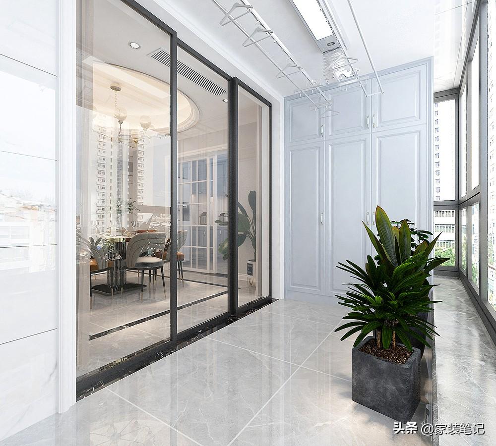 生活阳台主要以晒衣服为主,这里没有看到洗衣机是因为还有一个专门的洗衣房,在玻璃门的那边。