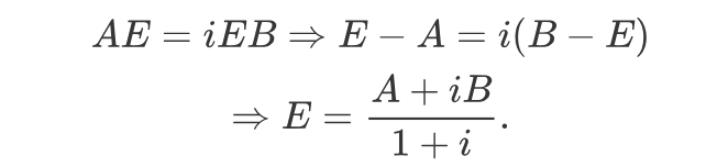 容易知道,三角形AEB是等腰直角三角形,AE=BE,且互相垂直,对应复数关系,也就是: