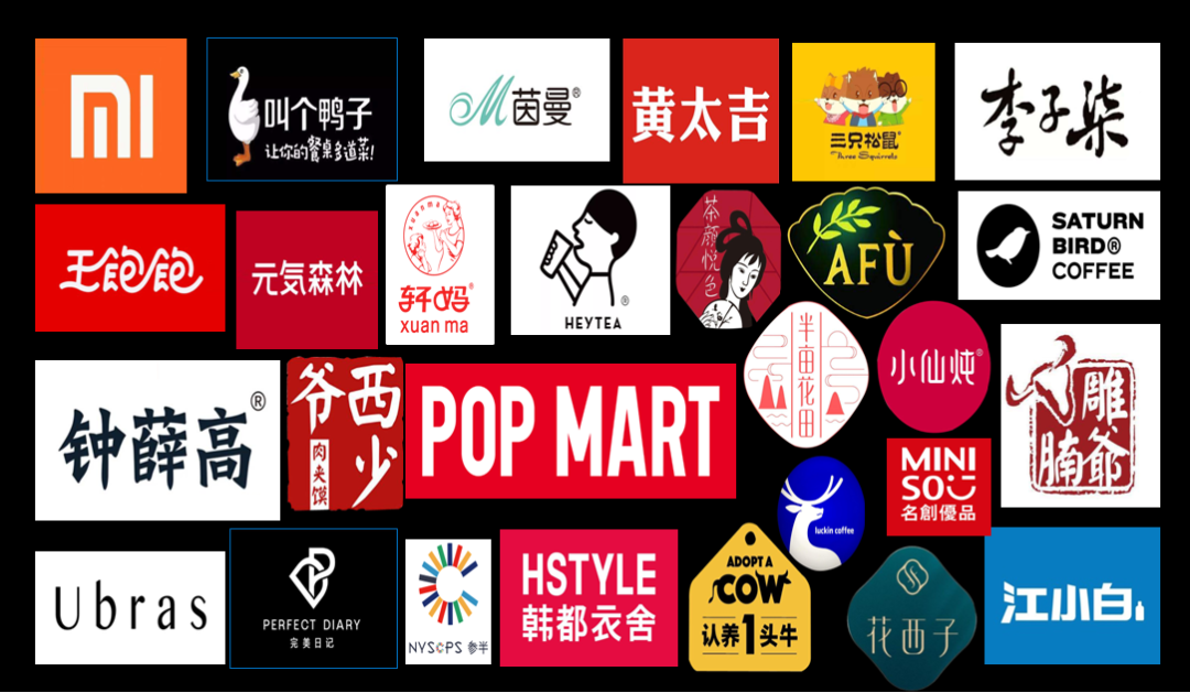 这些网红品牌包括:小米、叫了只鸡、茵曼、阿芙精油、黄太吉、三只松鼠、李子柒、王饱饱、元气森林、江小白、轩妈、喜茶、茶颜悦色、三顿半、钟薛高、西少爷、泡泡玛特、半亩花田、小仙炖、雕爷牛腩、Ubars、完美日记、参半、韩都衣舍、认养一头牛、瑞幸、名创优品、锤子手机、花西子。