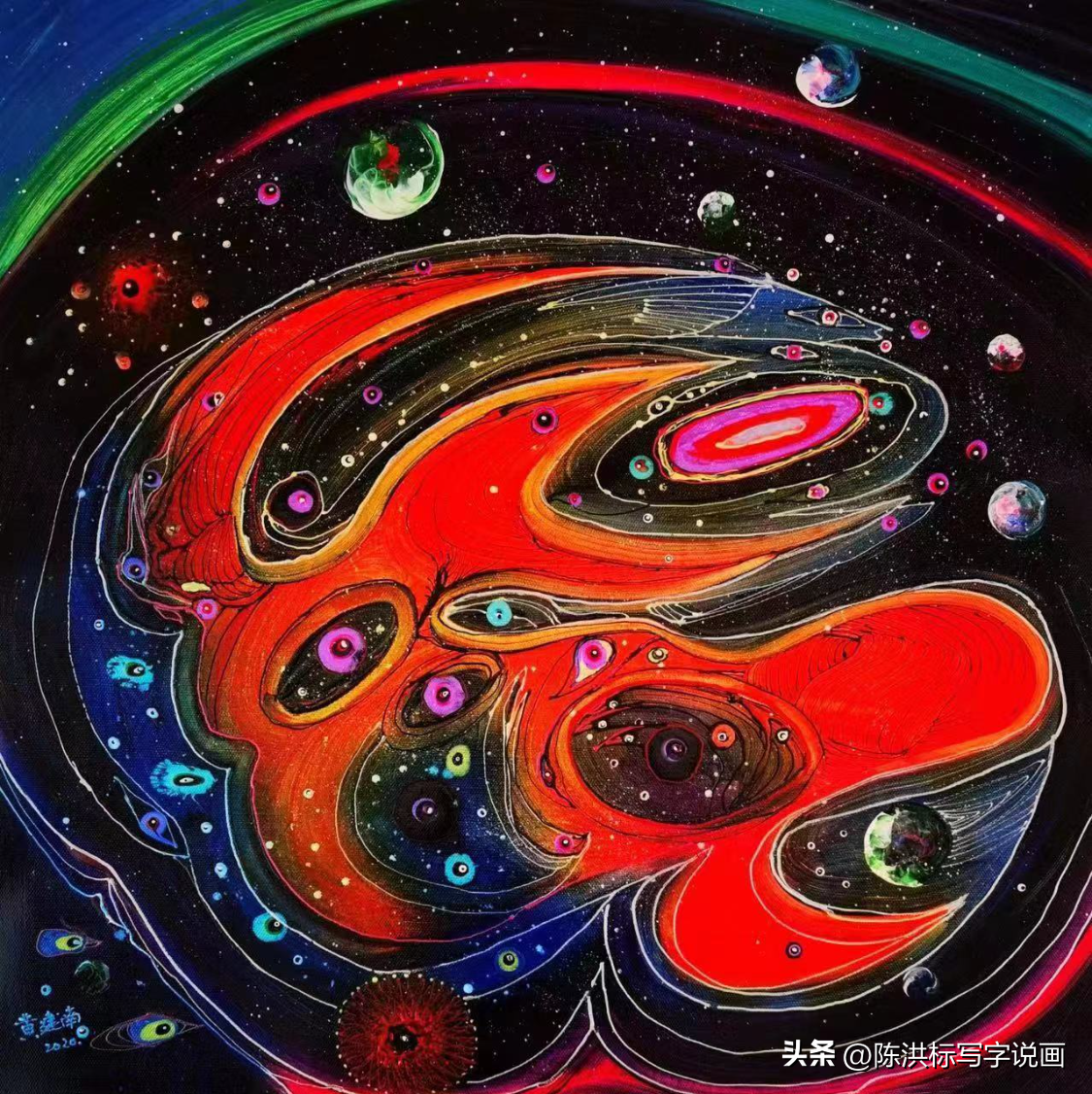 ▲黄建南油画作品《元宇宙》,210×99 cm,2022。
