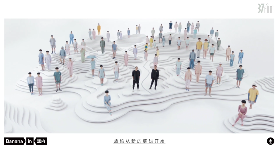 而蕉内一开始就借着主旋律的势,强化国货新底线,进一步诠释重新设计基本款的品牌内核,同时融入创意事件、品牌价值和社会责任,又是一升维案例的典范。