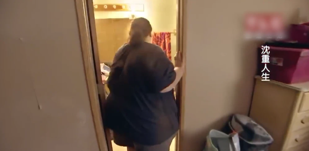 过于肥胖的康迪,要侧着身子才能进浴室的门,脂肪的堆叠,赘肉一层叠着一层,还会软趴趴地垂下去,赘肉间的缝隙必须清理干净,否则就会滋生细菌,每天清洗身体,是姐妹俩必须做的事情。她们会互相扑爽身粉,让自己舒适一些。