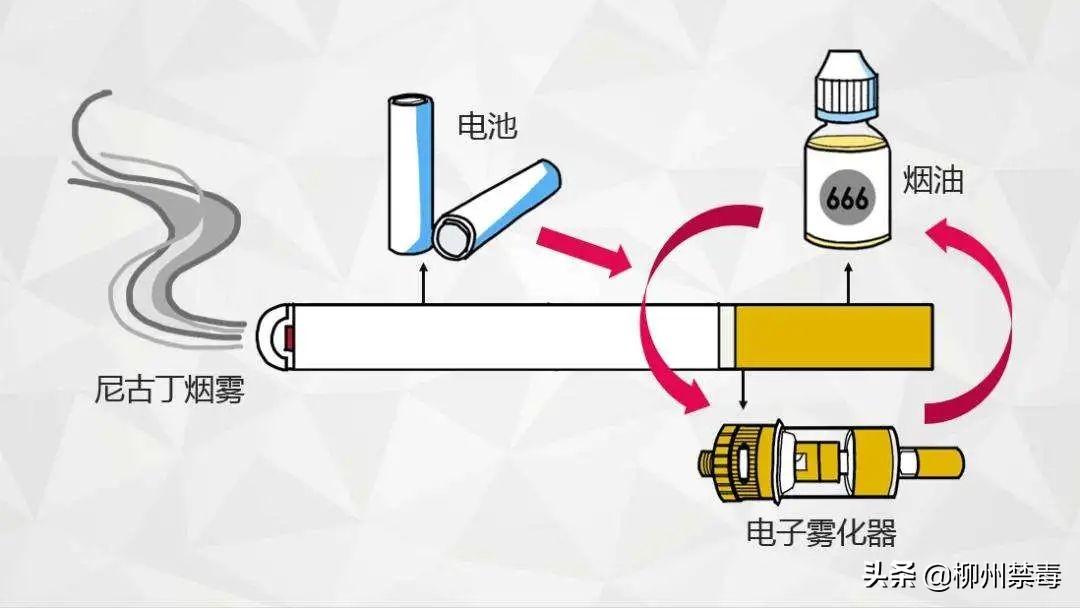 烟油主要成分为尼古丁、有机溶剂、食用香精、烟碱和添加剂等,烟油受热可形成多种口味的烟雾,给使用者带来“吞云吐雾”的快感。