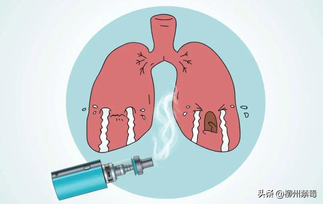 电子烟气溶胶里的2,3-丁二酮可加重呼吸道炎症,严重时还可堵塞小气道,形成“爆米花肺”。
