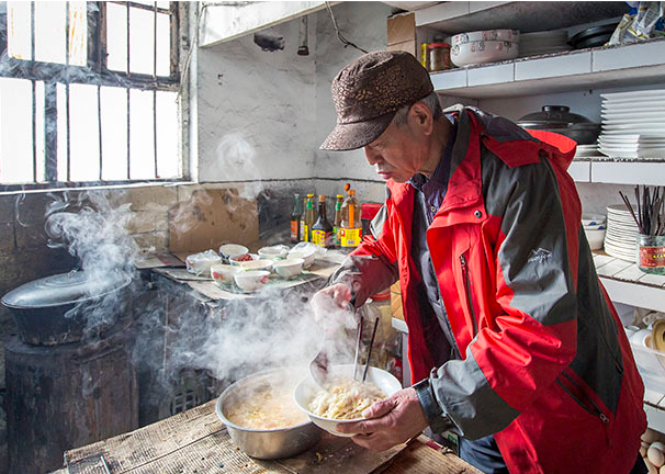 老权在旁边和老板对视一笑,招着手说不用了,汤里已经够辣了。