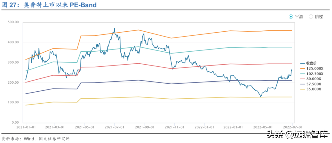 上市以来公司PE TTM主要运行在35-125倍之间,给予公司2022年70倍的目标PE,目标价为335.30元。