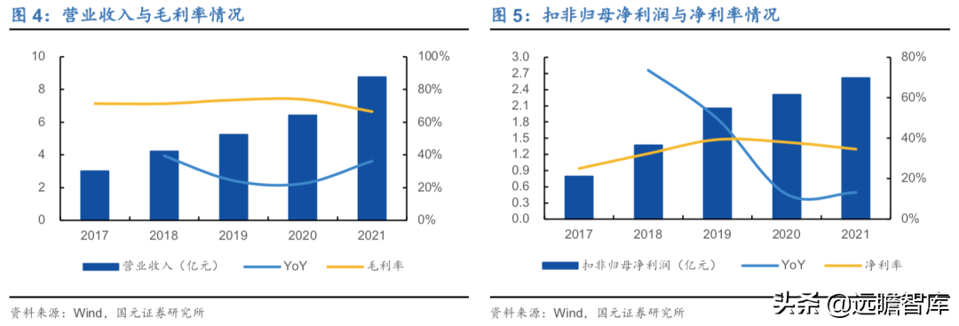 公司2017-2021年营业收入的CAGR达30.40%,扣非归母净利润的CAGR达34.79%。
