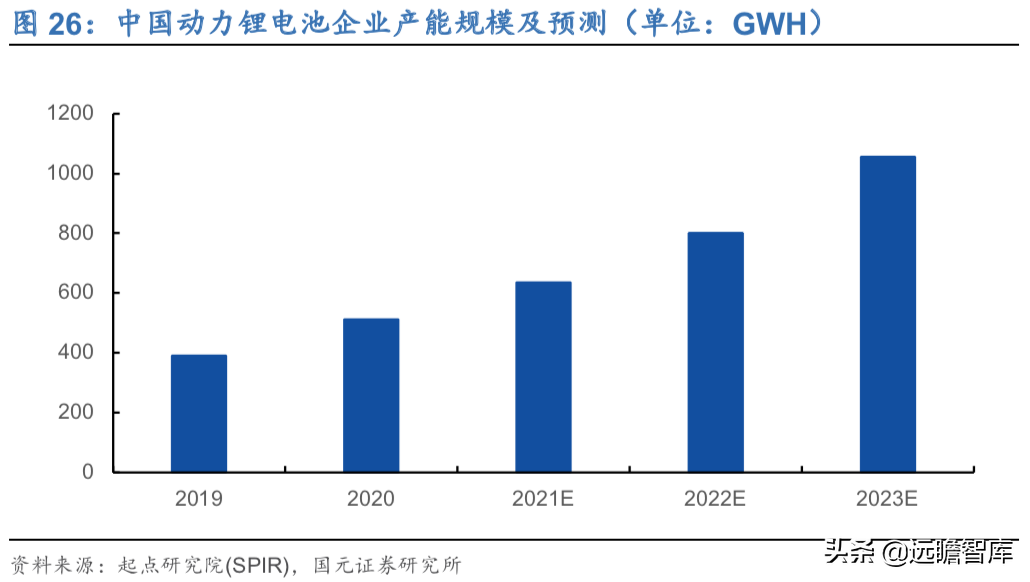 根据起点研究院(SPIR)的数据,2020年中国锂电池产能为511GWH,预计到2022年中国锂电池产能将达到802GWH,预计到2023年中国锂电池产能将达到1056GWH。