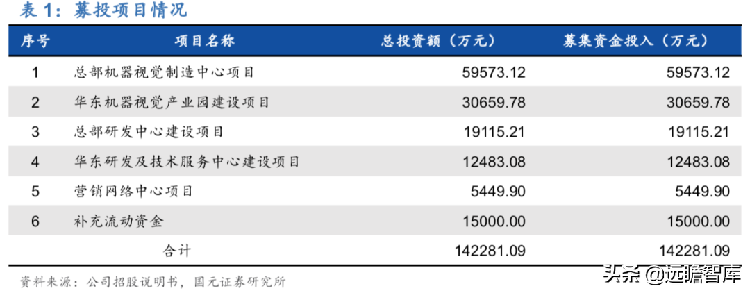 公司在科创板上市共募集资金16.18亿元,扣除发行费用后的募集资金净额为15.36亿元,募投项目包括总部机器视觉制造中心项目、华东机器视觉产业园建设项目、总部研发中心建设项目、华东研发及技术服务中心建设项目、营销网络中心项目及补充流动资金,拟使用募集资金14.23亿元。