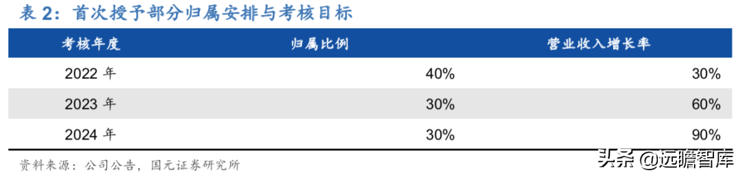 激励数量:本激励计划首次授予的限制性股票总量为31.68万股,占本激励计划草案公告时公司股本总额8247.57万股的0.38%;预留5.60万股,占本激励计划草案公告时公司股本总额8247.57万股的0.07%。授予价格:限制性股票的授予价格为60.00元/股。激励对象:本激励计划首次授予的激励对象总人数为272人,包括公司财务总监、核心技术人员及董事会认为需要激励的其他人员(不包括独立董事、监事、单独或合计持有上市公司5%以上股份的股东、上市公司实际控制人及其配偶、父母、子女)。考核目标:以2021年营业收入为基数,2022-2024年营业收入增长率分别不低于30%、60%、90%。根据公司2021年12月发布的《关于向激励对象首次授予限制性股票的公告(更正后)》,首次授予部分预计摊销总费用为7546.70万元,将在本激励计划的实施过程中按归属安排的40%、30%、30%的比例摊销。(报告来源:远瞻智库)