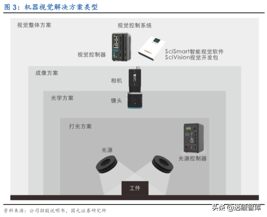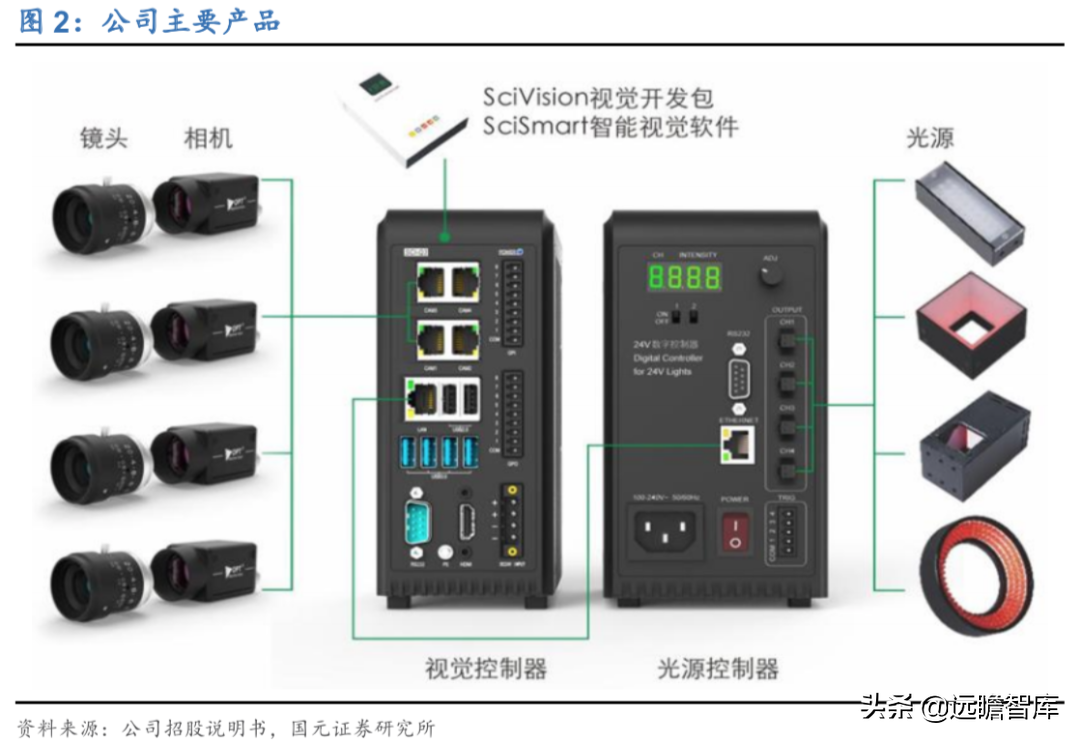 公司的视觉控制系统包括视觉处理分析软件和视觉控制器,其中,视觉处理分析软件产品包括SciVision视觉开发包和SciSmart智能视觉软件。