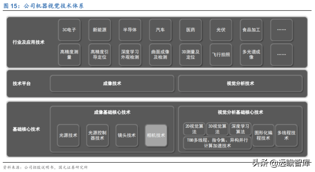 同时,公司以产品核心技术为基础,建立了成像和视觉分析两大技术平台,结合多年积累的机器视觉在各下游行业应用的专有技术(Know-How),形成了多层次的技术体系。