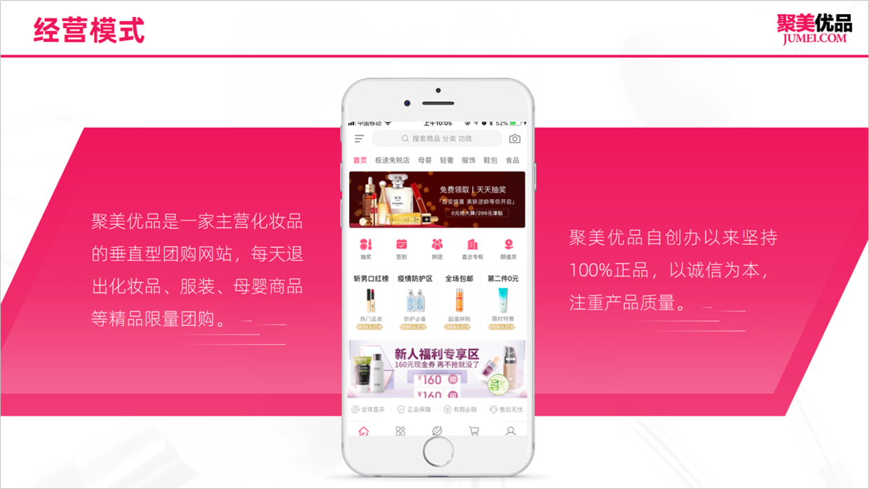 比如,可以借助样机设计,用聚美优品的APP页面,刚好突出跟主题内容相关的信息。