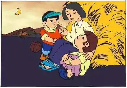那时候,妈妈没有土地,全部生活都在两只手上,汗水流在地主火热的田野里,妈妈却吃着野菜和谷糠。冬天的风雪,狼一样嚎叫,妈妈却穿着破烂的单衣裳,她去给地主缝一件狐皮长袍,又冷又饿倒在雪地上。经过了多少苦难的岁月,妈妈才盼到今天的好光景。