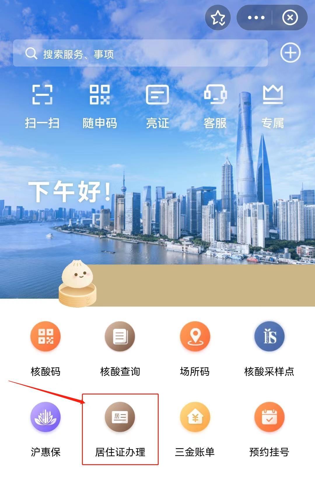 (1)打开随申办,在“首页”频道,点击“居住证办理”。