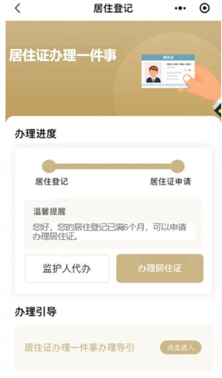 (1)点击首页办理中的居住证办理,进入居住证办理一件事页面。