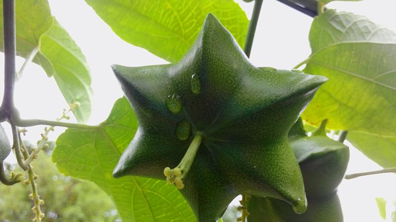 走进细瞧,只见它纤细的枝条上挂满了奇形怪状的果实,有的像4角的方形,或是5个角的五角星,抑或是8个角的八角。
