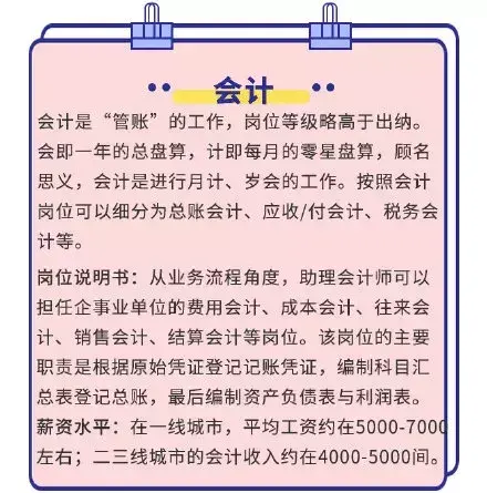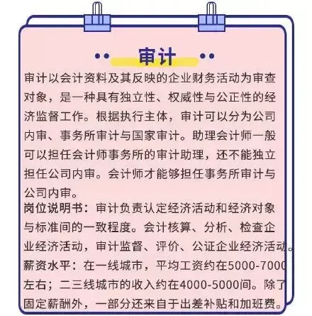想要拥有10万年薪,你还要选对地方呢,毕竟三线以下城市确实不能满足你的需求。无论你要做,出纳/会计/审计。一线城市,三者平均薪资5000~7000之间,这样加上你的年终奖和各项补贴,10万年薪妥妥的!