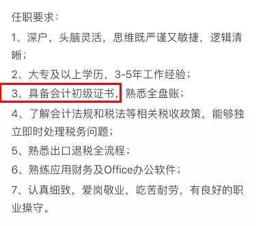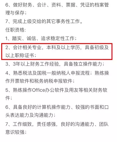 总结下来,就这么几点:1、要有初级职称证书;2、你要会做账;3、你要懂报税;4、你要有两年以上工作经验哦~满足这些要求,你的简历就会迅速吸引面试官的眼球。接下来,就是你距离10万年薪最近的时刻了~收到面试通知时,要先了解公司及岗位,再花一到两天时间准备会计面试必答,做好全面的准备,面试镇定自若就可以了!
