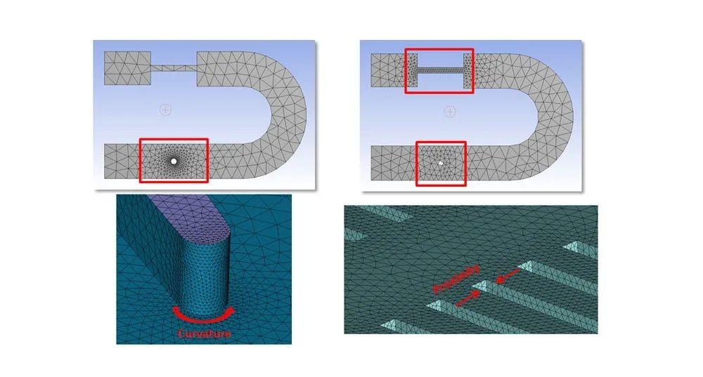 那么哪些位置需要密的网格呢?两个位置,一是精细几何细节的位置(曲边、狭缝等),二是有大梯度变量的位置。除此之外的区域,都要求使用粗网格,从而提高计算效率。