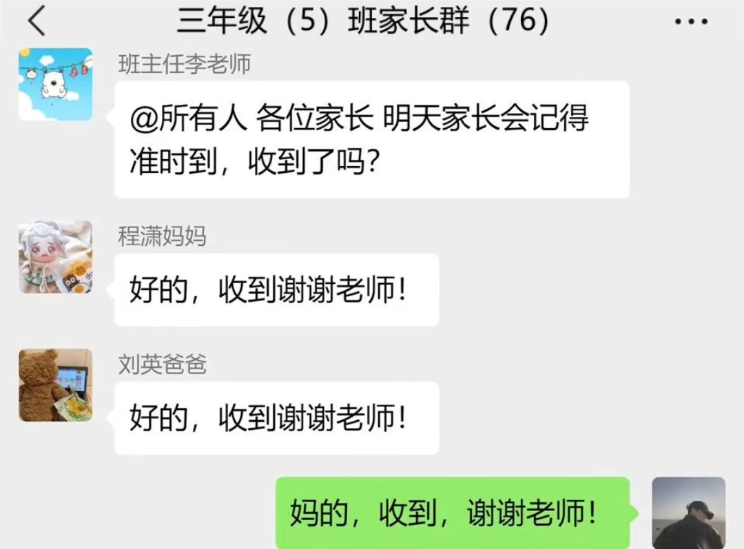 班级群的存在就是为了传达关于学生的一切事情,所以为了学生,还是应该保证群内的良好氛围,每一位家长和老师都有责任做好这一点。