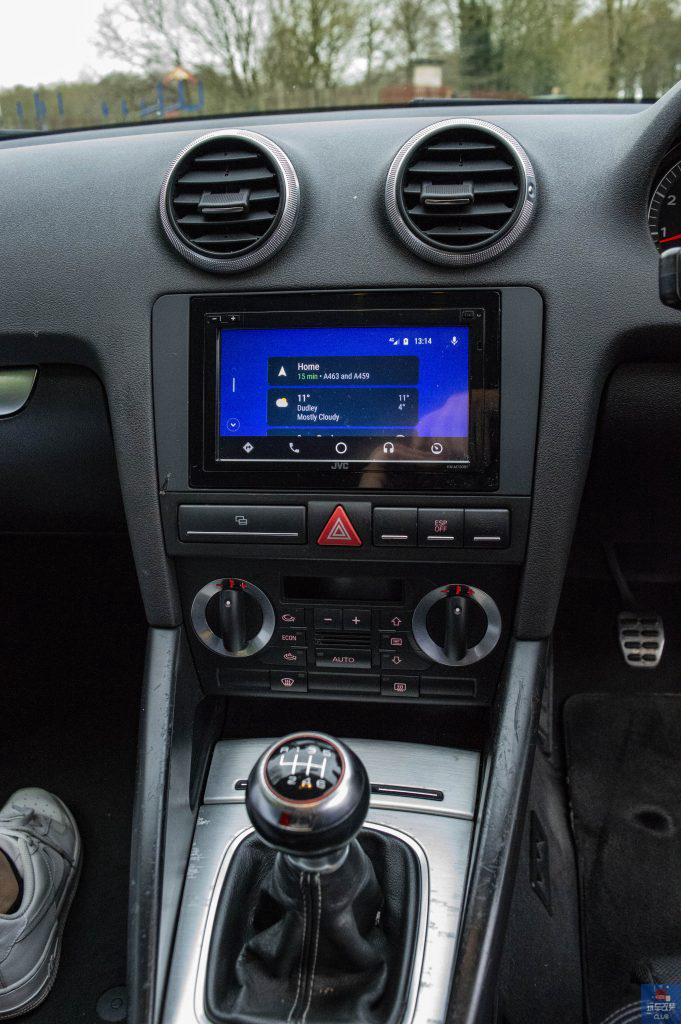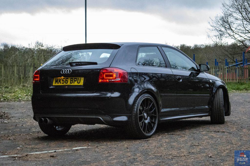 这是一辆改装“黑武士”风格的2006款奥迪A3,外观部分,全车采用奥迪S3前保险杠,奥迪RS 3格栅,奥迪S3后保险杠,奥迪S3侧裙,搭配19寸BBS CH 合金轮毂,内饰部分,选用奥迪S3换挡头,奥迪S3方向盘以及JVC主机(带Android Auto / Car Play),性能动力部分,则换装定制排气系统以及定制锻造泄压阀,性能部分调校至220马力。