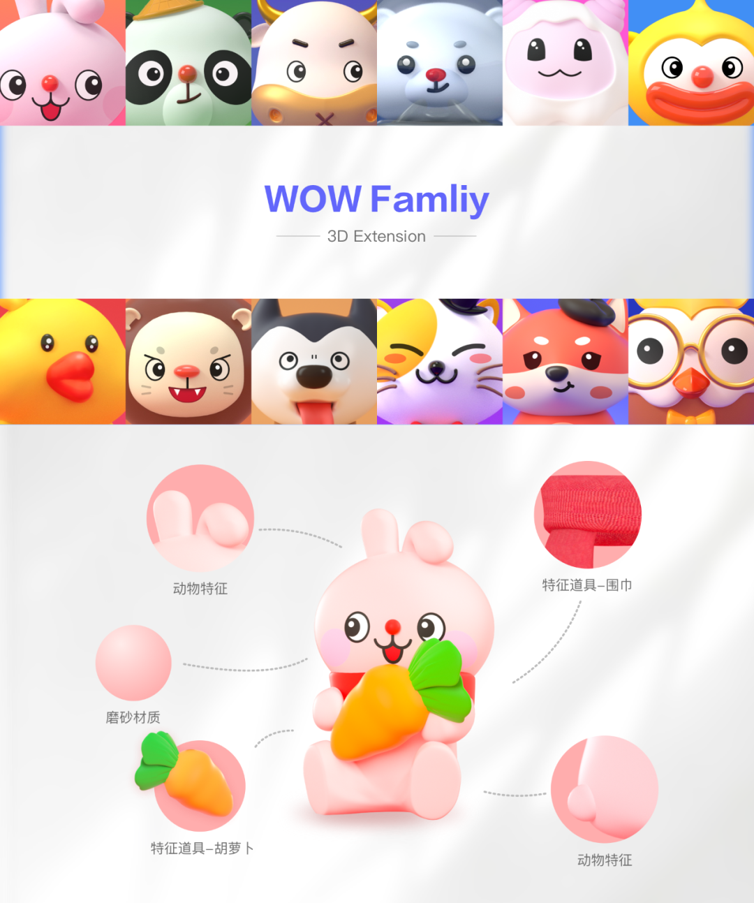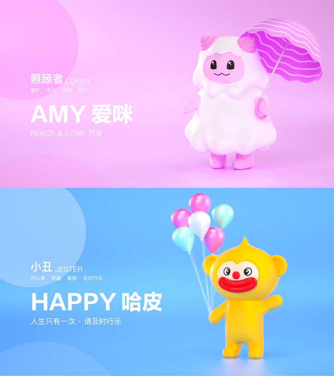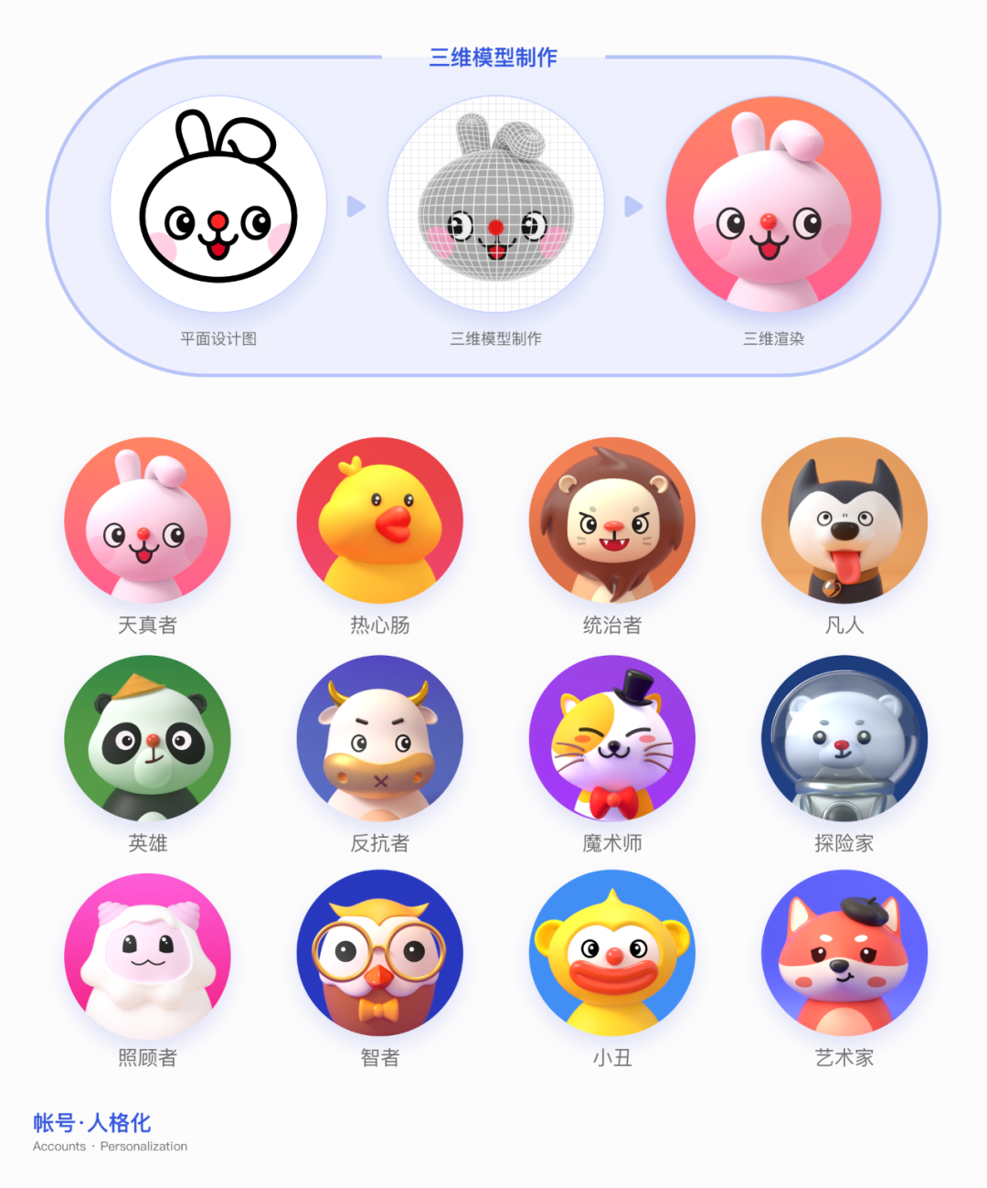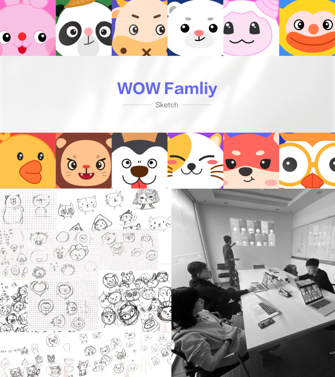 基于人格理论依据开始将动物具像化,经过大量的讨论、草图绘制、筛选和优化。