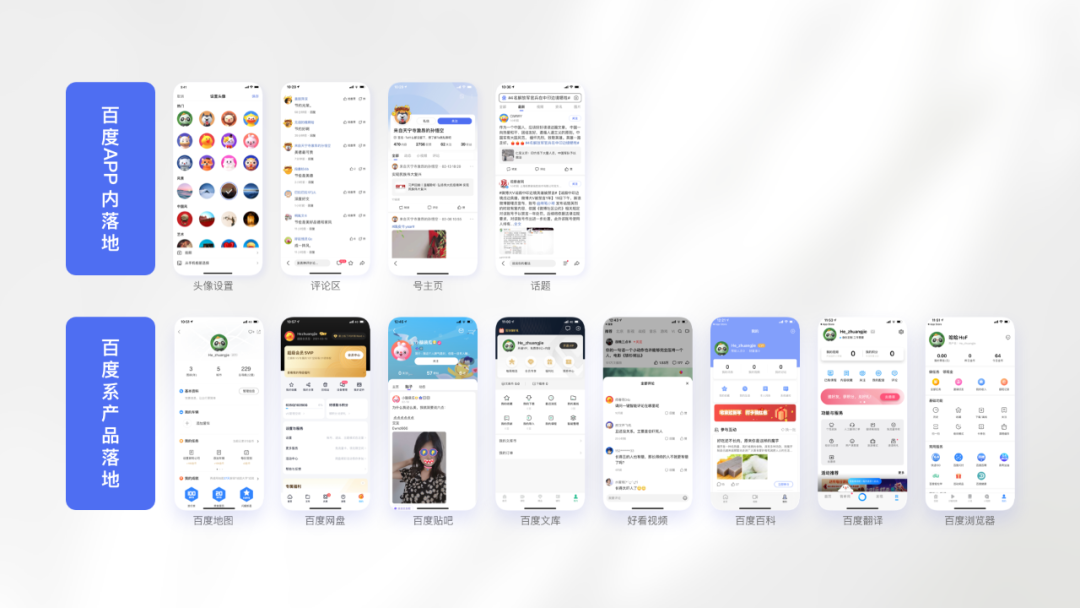 整套帐号人格化头像设计完成百度系产品落地应用,助力全系产品提升用户粘性。