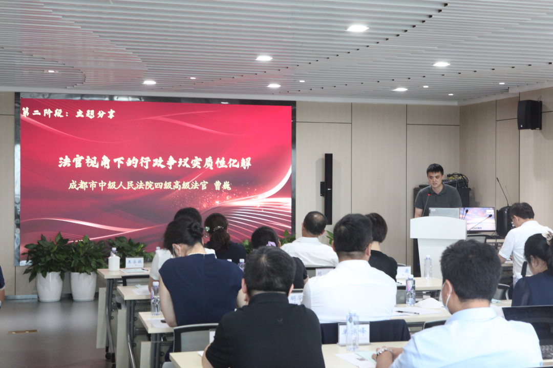 四川上行律师事务所律师宣磊,成都中院行政庭四级高级法官曹巍,分别从律师和法官的不同视角,围绕行政争议实质性化解作专题分享。