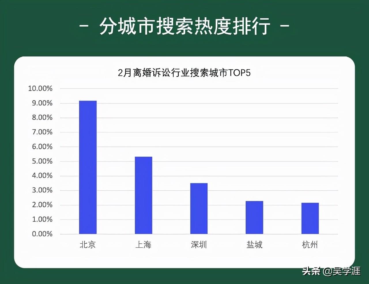 2月离婚诉讼搜索热度排行,“北上深杭”一直固若金汤一般的存在,江苏盐城一批黑马杀出来,确实有点意外。