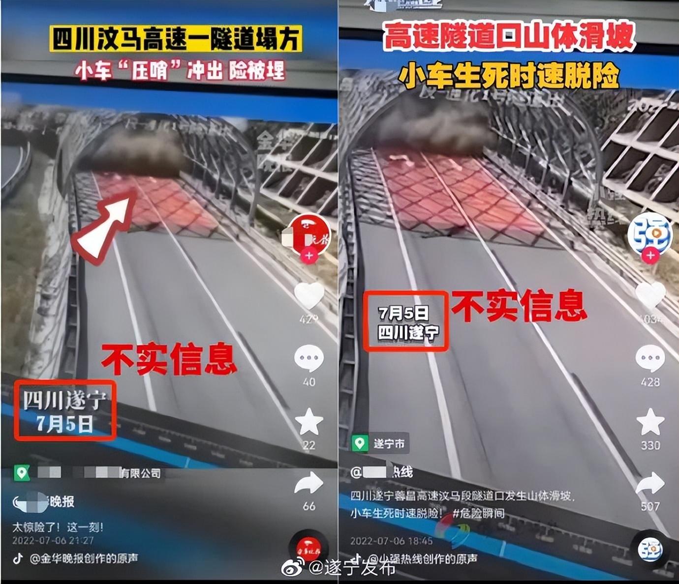 网传“四川汶马高速遂宁段”出现塌方?假的!