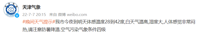 根据预报,天津这两天最高气温仍在35°C上下,天气闷热,紫外线强,大家外出注意做好防晒补水。