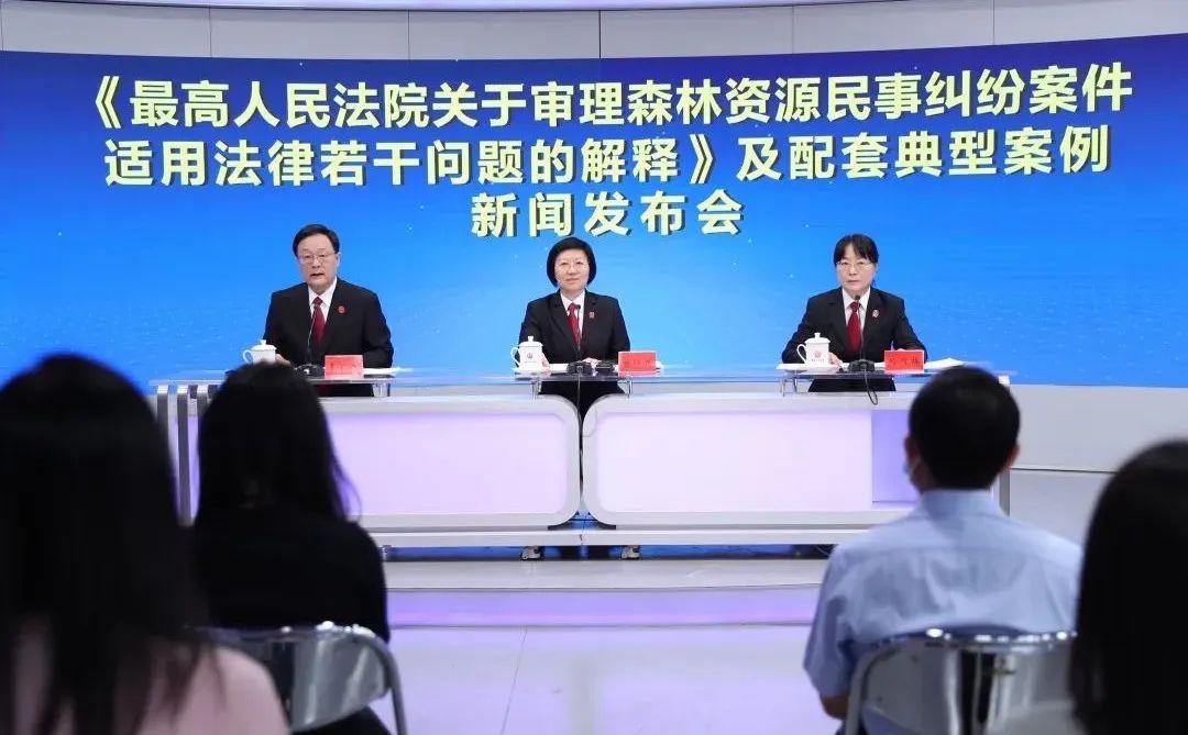6月14日,最高法召开《最高人民法院关于审理森林资源民事纠纷案件适用法律若干问题的解释》(以下简称《解释》)及配套典型案例发布会。最高人民法院副院长杨临萍、最高人民法院环资庭庭长刘竹梅出席发布会并回答记者提问,发布会由最高人民法院新闻发言人李广宇主持。