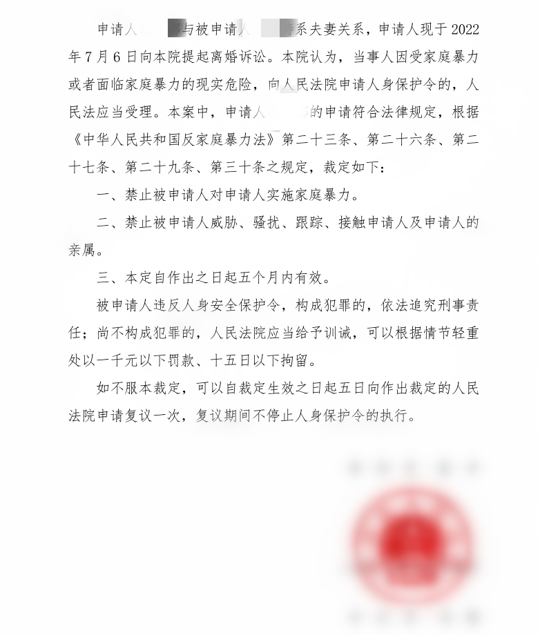 在该案办理过程中,胡某告诉承办法官张宇,人身安全保护令签发后,赵某某的骚扰行为大大减少。同时有了此令,在遇到危险时她还能随时寻求法律保护,这让她有了莫大的安全感,接下来也能安心打离婚官司了。