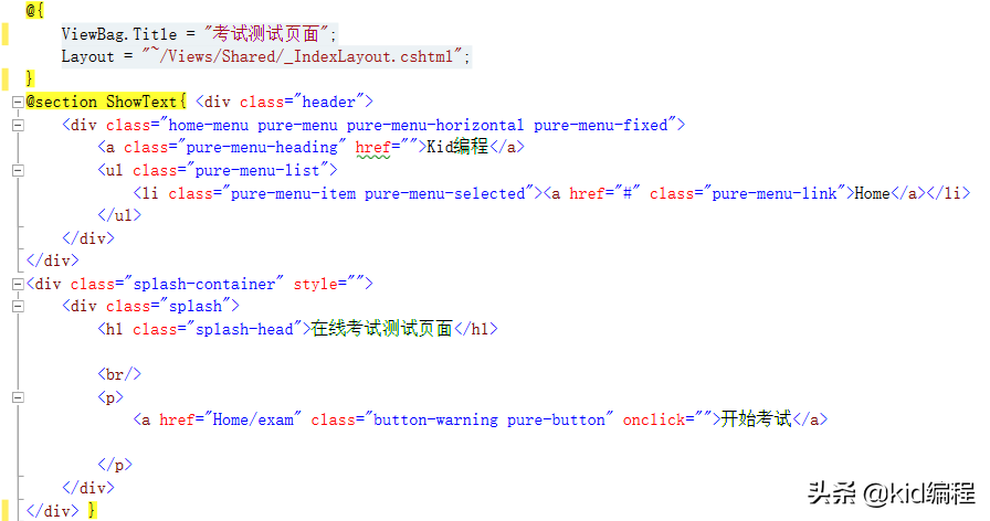 在线考试首页面视图定义如下所示: